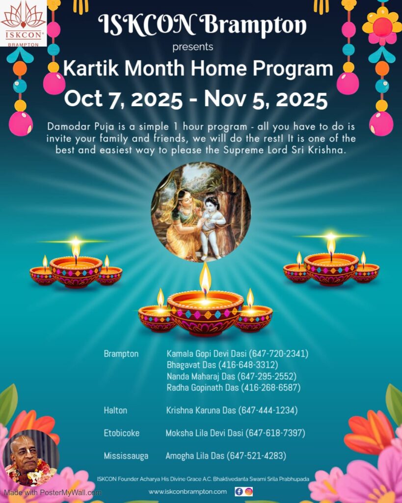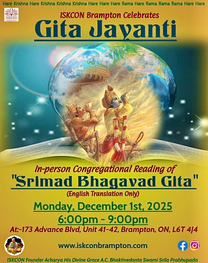 Hare Krishna, Bhaktivedanta Academy of Education Canada invites you to join this online course – Bhagavad Gita Fundamentals facilitated by HG Damodar Krishna Prabhu. This introductory course is a thematic overview of the philosophical basis of Bhakti as taught in the Bhagavad Gita. This 8 sessions course starts on Nov 15th 2025 at 7PM to …
