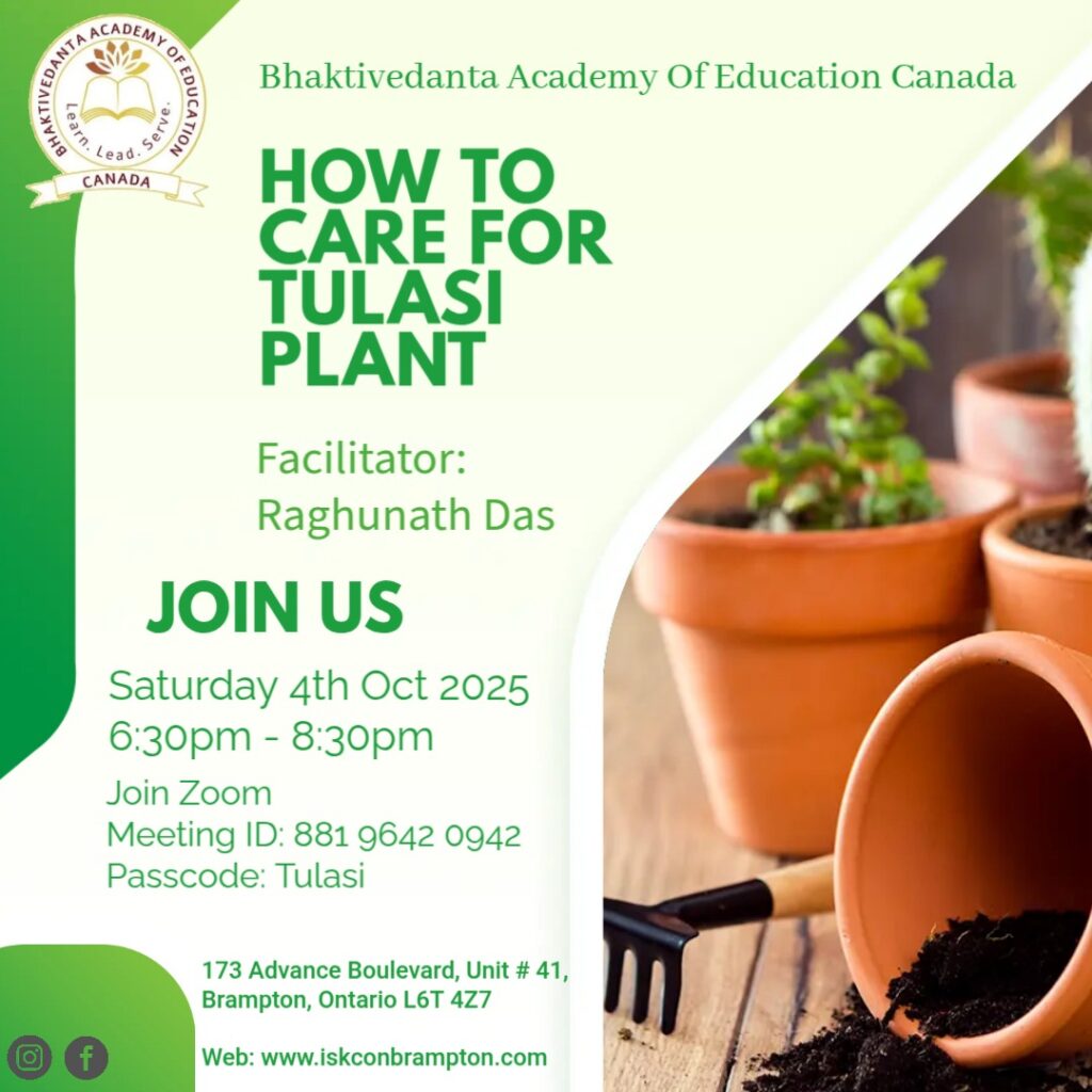 Hare Krishna Prabhus and Matajis, Due to popular demand, we will be conducting the Tulasi care session again. As we are approaching the colder weather many of you have been inquiring about when to bring Tulasi Devi indoors and what are the dos and donts for Tulasi care. All these points will be discussed during …